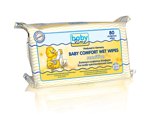 Влажные салфетки Комфорт Sensitivе, 80 шт., без отдушек. Нежно очищает и ухаживает, содержит пантенол.